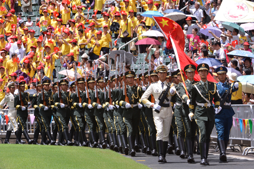 應邀出席的主禮嘉賓有:中央政府駐港聯絡辦公室副主任林武,外交部駐港特派員公署副特派員李元明,中國人民解放軍駐香港部隊副政委儲茂華少將,多名特區政府官員包括民政事務局局長曾德成、勞工及福利局局長張建宗、商務及經濟發展局局長蘇錦梁、政制及內地事務局局長譚志源;以及中央政府駐港聯絡辦公室社工部部長張鐵夫、社團聯絡部部長郭鐵生,中國人民解放軍八一跳傘隊政委陳維成,以及17個發起團體的負責人等。
