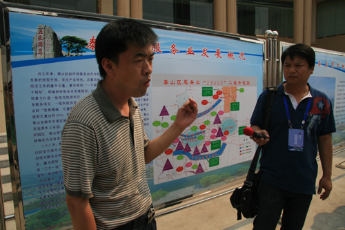 華夏之聲副總監胡翼(右)采訪泰安城市規劃