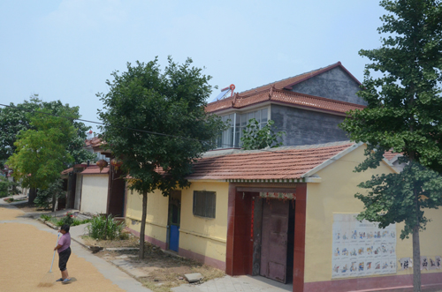 山東壽光縣三元朱村現在人均年收入1萬多元,現在正值收割曬麥時期