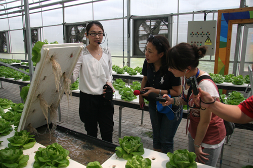 華夏之聲記者陳燕(中)、宋雪(右)了解有機蔬菜種植技術