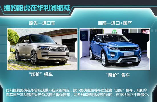就在本月初,捷豹路虎方面還宣布了調低銷售價格,以穩定市場體系,并幫助經銷商在中國的長遠發展。公開的數據 顯示:奇瑞捷豹路虎攬勝極光下調指導價,最高降幅達到5萬元。官方降價后,國產極光的官方指導價調整至39.8萬元-55.2萬元,而這是距離國產車上市 才5個月。今年1-5月份,奇瑞捷豹路虎在中國市場的銷量為從39204輛,與去年同期的50925輛相比下滑23%。