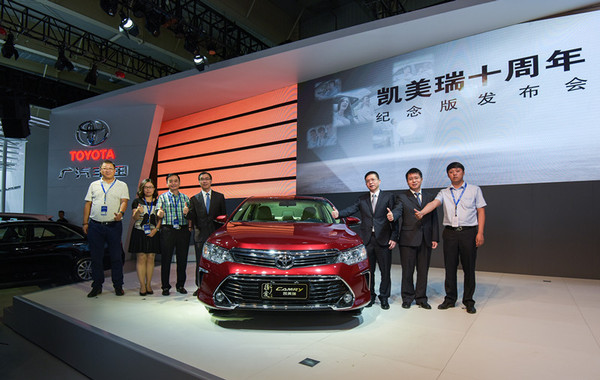 (2016年7月15日,長(zhǎng)春)廣汽豐田在長(zhǎng)春車(chē)展發(fā)布了凱美瑞十周年紀(jì)念版,以此致敬經(jīng)典全球車(chē)在中國(guó)市場(chǎng)走過(guò)的十年榮耀之路,以趨向極致的均衡產(chǎn)品力和匠心品質(zhì),為消費(fèi)者帶來(lái)更具價(jià)值的中高級(jí)轎車(chē)購(gòu)買(mǎi)選擇。