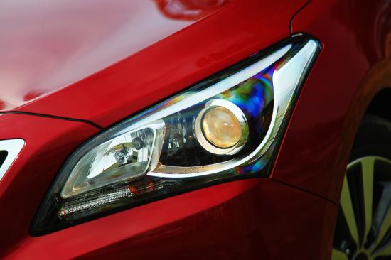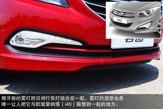 裝飾條及磨砂黑底把前霧燈連接在一起,獠牙般的霧燈把日間行車燈結(jié)合在一起。這霧燈的造型也是唯一讓人把它與歐版索納塔(i40)聯(lián)想到一起的地方。