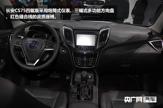 內飾方面,長安CS75四驅版采用炮筒式儀表、三幅式多功能方向盤、紅色縫合線的皮質座椅。而檔桿后方相比兩驅版車型增加了一個在兩驅和四驅中轉換的按鈕。