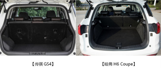 后備箱空間方面,哈弗H6 Coupe刨除了后輪的影響,提升了空間利用率。傳祺GS4的后輪占用了兩側(cè)20厘米的底部空間,多件行李放置時難免空間不足。