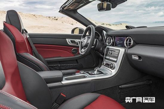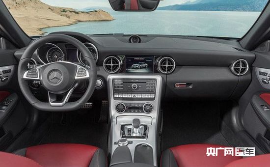 內飾方面改進不小,車內配備三幅式運動方向盤、炮筒儀表、圓形空調出風口、亞光面板以及運動座椅打造了非常運動的內飾氛圍。可以看出,SLC并沒有采用奔馳慣用的懷擋設計,擋把在傳統的中控臺下方位置。AMG版本則搭配了Alcantara包裹的方向盤、碳纖維裝飾的中控臺以及紅色縫線的運動座椅等。
