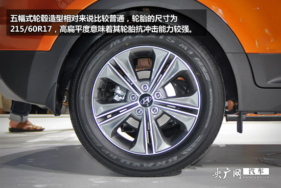 在外觀設計方面,ix25采用了現代的家族設計理念——流體雕塑,車身各處線條非常尖利,前臉采用了家族式樣的六邊形進氣格柵,與下方的三角形對稱格柵搭配相得益彰,整輛車看起來非常協調。