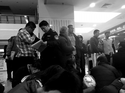 民警對(duì)排隊(duì)掛號(hào)者進(jìn)行登記。