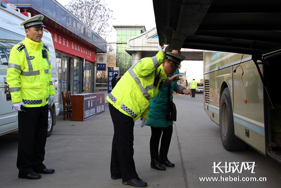 在春運交通安全服務站,民警正在登記檢查。長城網 高琳哲 攝