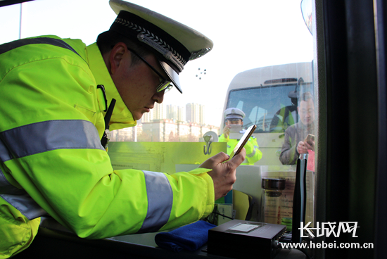 此外,記者在裕華高速口春運安檢現場還看到,許多固定班線的客車上貼著一張二維碼。張博告訴記者,高速交警石家莊大隊在2016年春運時研發了“客運車核查平臺”。駐客運站民警對途經高速裕華路口班線客車信息(車輛狀況、乘客數量、司機乘務員情況、正常行駛情況、車輛違法記錄等)在離站前統一錄入核查平臺后,會自動生成一張與該車對應的紙質二維碼,當客車行至高速裕華口進行檢查時,民警只需使用手機專用的客車核查APP掃碼軟件掃描已粘貼的二維碼,車輛的所有信息會自動顯示在手機上,從而提高安檢效率。