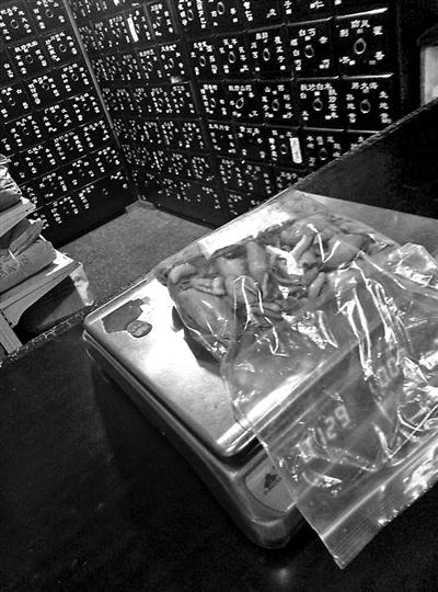 隨后,北青報(bào)記者來(lái)到望京附近的一家藥店,店員向北青報(bào)記者推薦了一服中藥,其中含有10克穿山甲片,并稱也可以單獨(dú)購(gòu)買穿山甲片,但是要10克起賣,137.5元10克。店員從藥柜中取出一個(gè)透明的自封袋,里面裝有三分之一的穿山甲片,北青報(bào)記者問(wèn)這袋有多重時(shí),店員隨即將這袋穿山甲片放在電子秤上,電子秤顯示共129克,“我們進(jìn)貨都是1公斤的,賣到現(xiàn)在只剩這么多了”。