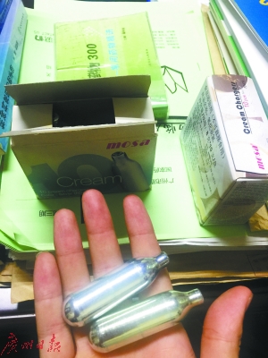 近日,有市民稱在廣州的一些娛樂場所內(nèi)發(fā)現(xiàn)“笑氣彈”的身影。還有市民表示,在海珠區(qū)一個酒店用品批發(fā)市場內(nèi)的部分廚具和烘焙用品店內(nèi)可以輕易買到商品名稱為“氧化亞氮”的“笑氣彈”,價錢約45~65元一盒,銷售的對象多為開咖啡店或餐廳的餐飲業(yè)人員。
