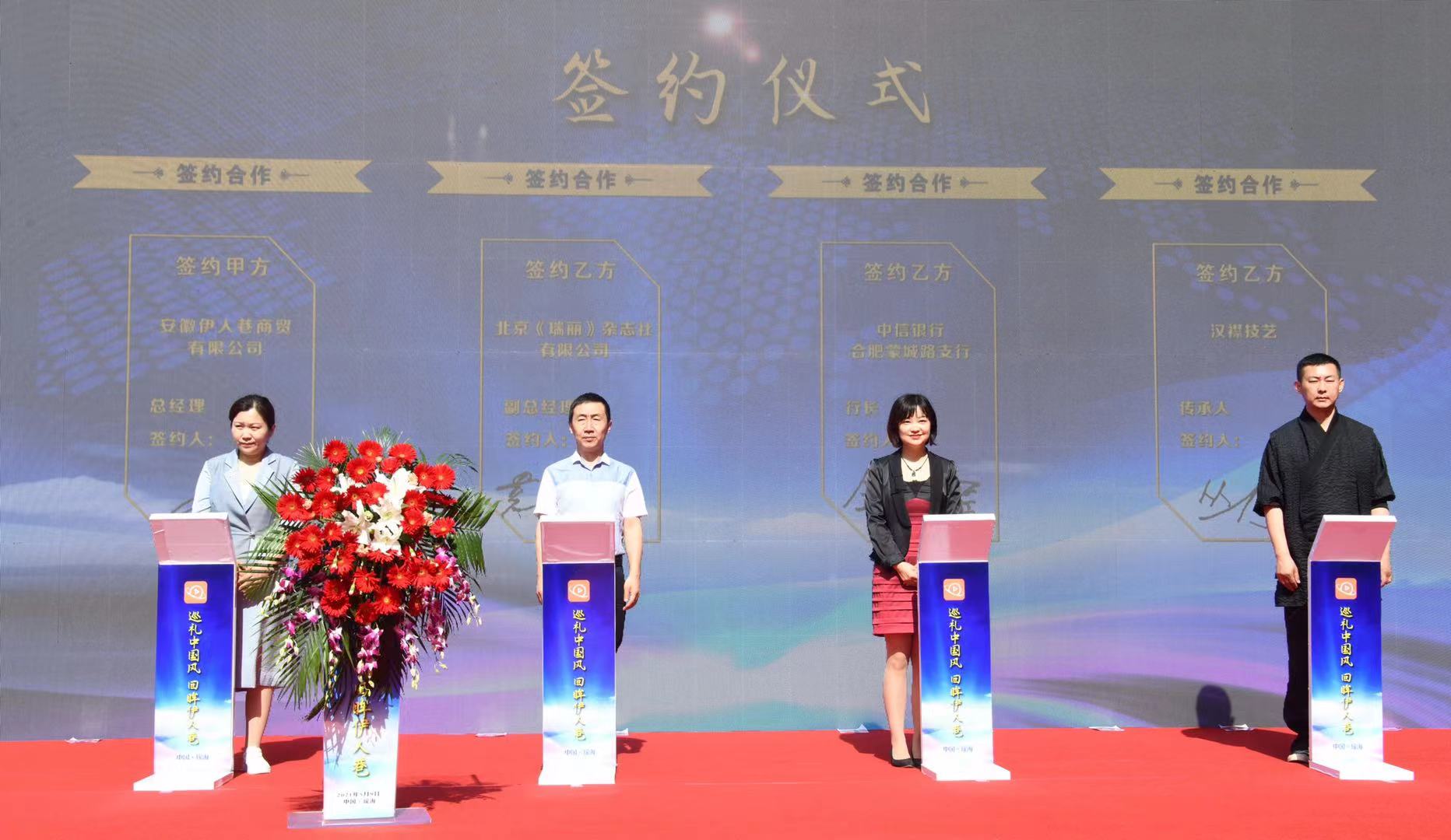 在活動現場,包括北京《瑞麗》雜志社有限公司、金龍魚合肥總代、迎駕集團合肥運營商、百利食品等14家企業和非遺文化傳承人與選品中心簽約。