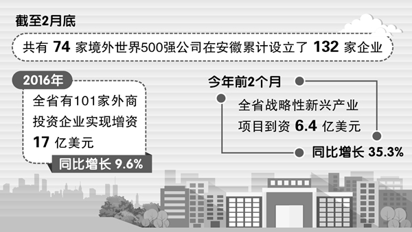近年來,我省把吸引世界500強企業或知名跨國公司和行業龍頭企業,作為利用外資的重中之重,積極優化投資環境,催生新一輪對外開放高起點加快推進。今年以來,世界500強企業美國PPG工業(龐貝)、香港華潤集團在皖先后新設了多個項目,我省引進境外世界500強企業實現了新突破。最新數據顯示,截至2月底,共有74家境外世界500強公司在安徽累計設立了132家企業。