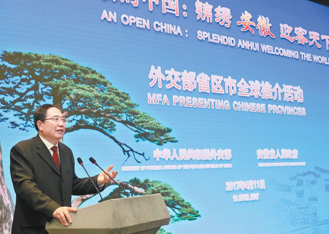 央廣網北京4月12日消息(記者王曉蕾 高藝寧)昨日下午,以“開放的中國:錦繡安徽,迎客天下”為主題的外交部省區市全球推介活動在外交部藍廳舉行。“壯美”、“厚重”、“創新”被發言嘉賓多次提起,成為此次安徽推介會熱詞。