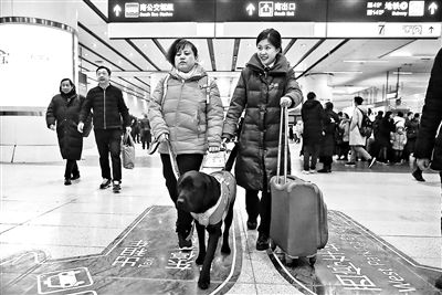 原標(biāo)題:導(dǎo)盲犬黑萌萌昨抵京“接班”引路