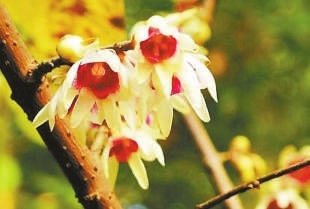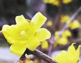 現(xiàn)場:沿著蕙芳園蜿蜒的竹林小徑,穿過一座樸實(shí)無華的柴門,地形突然起伏,青松樹下幾枝金黃閃現(xiàn)眼前,20余株馨香素雅的蠟梅正在盛開。