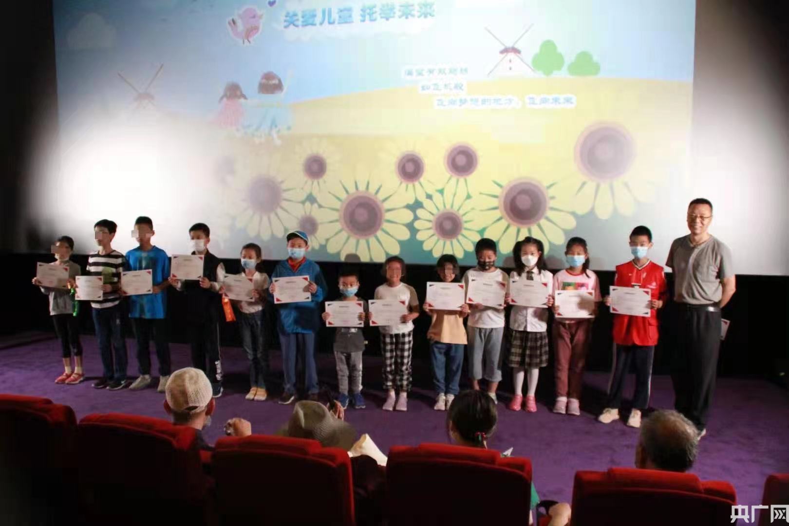此時(shí)家長也帶著孩子們陸續(xù)到達(dá)影院,孩子們?cè)谶M(jìn)場前愉快地交流著。