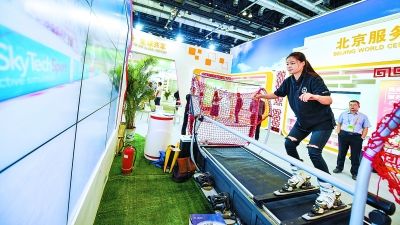 在北京國際服務貿易交易會上,一家北京企業正在演示3D滑雪模擬設備。本報記者 鄧偉攝