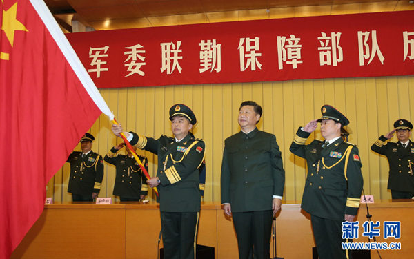 習(xí)近平:我要求你們,要牢記使命、勇挑重?fù)?dān),以黨在新形勢下的強(qiáng)軍目標(biāo)為引領(lǐng),深入貫徹新形勢下軍事戰(zhàn)略方針,推進(jìn)政治建軍、改革強(qiáng)軍、依法治軍,按照聯(lián)合作戰(zhàn)、聯(lián)合訓(xùn)練、聯(lián)合保障的要求加快部隊(duì)建設(shè),努力建設(shè)一支強(qiáng)大的現(xiàn)代化聯(lián)勤保障部隊(duì)。