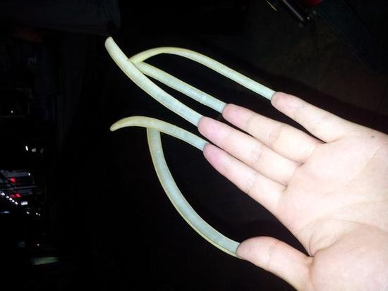 有人喜歡留長(zhǎng)指甲,覺(jué)得涂上指甲油很好看,但通常都不會(huì)超過(guò)2厘米,十幾厘米的長(zhǎng)指甲您能想象嗎?受網(wǎng)上美甲教程的影響,德國(guó)紐倫堡女孩西蒙·泰勒從2014年8月開(kāi)始留指甲,3年沒(méi)剪過(guò),現(xiàn)在16歲的她,拇指指甲已經(jīng)長(zhǎng)到14.8厘米。