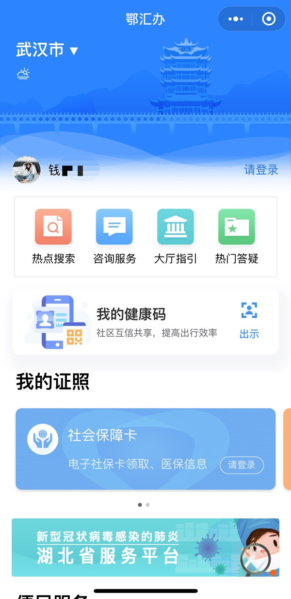 3月10日,湖北省居民可以通過微信小程序“鄂匯辦”領取專屬健康碼。