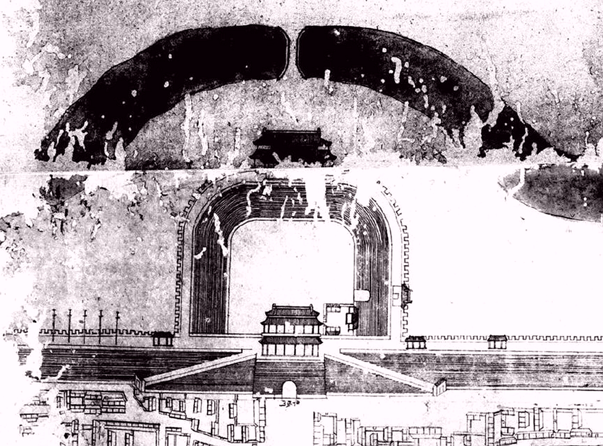 元至正二十九年(1369)元順帝又令修筑包括平則門在內(nèi)的各城門甕城及護(hù)城河吊橋。明代在大都城基礎(chǔ)上營建北京城,改11門為9門,其西城垣除北端縮短2.5公里并取消肅清門,南端展拓1公里外,其余基本未動,平則門亦沿襲舊稱。明正統(tǒng)元年(1436)詔修內(nèi)城9門城樓,至正統(tǒng)四年完工,平則門改稱阜成門,修筑城樓、城門、箭樓、甕城、甕城門各一,其規(guī)制較元大都城門為高。