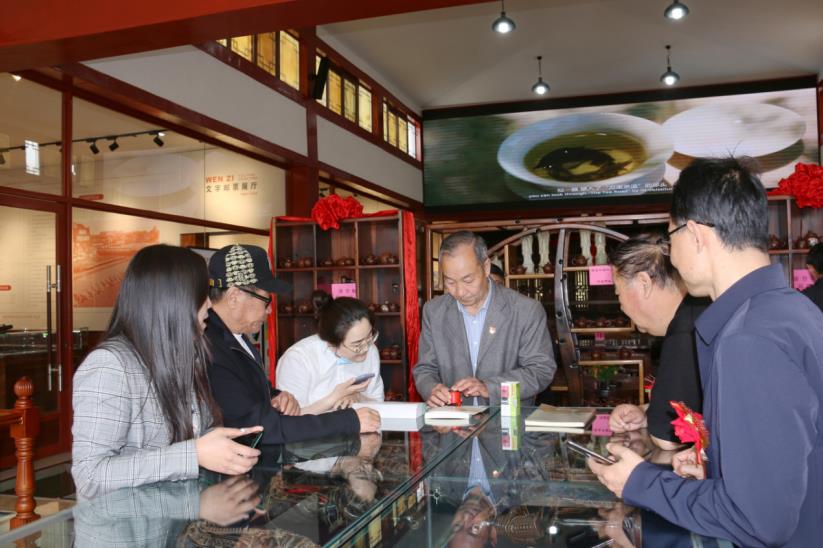 (游客在購買雞鳴驛特色紀念封及明信片,打卡留念)