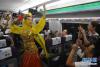 蘭州客運段列車員在蘭州鐵路局開行的首趟寶蘭高鐵G2028次動車組上為旅客表演節目(7月9日攝)。7月9日,寶雞至蘭州高鐵正式開通運營,西北的甘肅、青海、新疆由此融入全國高鐵大家庭。今年開跑的“復興號”在京滬高鐵實現350公里時速運營,再次創造了領先世界的中國速度。目前,中國鐵路在勘察設計、工程建造、高速動車組、列車控制、牽引供電、運營管理、安全保障等領域已經取得一系列自主創新成果,中國鐵路總體技術水平已邁入世界先進行列,部分技術處于世界領先水平。作為中國“新四大發明”之一,高鐵不僅安全、便利、快捷地服務著中國旅客,同時也驚艷著世界。新華社記者 陳斌 攝 -