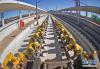 中鐵十九局工程人員在京沈高鐵凌源南站進行鋪軌作業(9月28日攝)。京沈高鐵起自北京星火站,經河北省承德市、遼寧省朝陽市、阜新市接入沈陽站,線路全長698公里,設計時速350公里。今年開跑的“復興號”在京滬高鐵實現350公里時速運營,再次創造了領先世界的中國速度。目前,中國鐵路在勘察設計、工程建造、高速動車組、列車控制、牽引供電、運營管理、安全保障等領域已經取得一系列自主創新成果,中國鐵路總體技術水平已邁入世界先進行列,部分技術處于世界領先水平。作為中國“新四大發明”之一,高鐵不僅安全、便利、快捷地服務著中國旅客,同時也驚艷著世界。新華社記者 楊青 攝 -