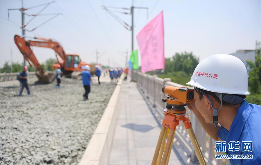 石濟客專引入石家莊樞紐工程的建設人員在進行測量作業(6月15日攝)。這一工程預計今年12月底全線通車,建成后石家莊至濟南乘坐高鐵只需90分鐘左右。今年開跑的“復興號”在京滬高鐵實現350公里時速運營,再次創造了領先世界的中國速度。目前,中國鐵路在勘察設計、工程建造、高速動車組、列車控制、牽引供電、運營管理、安全保障等領域已經取得一系列自主創新成果,中國鐵路總體技術水平已邁入世界先進行列,部分技術處于世界領先水平。作為中國“新四大發明”之一,高鐵不僅安全、便利、快捷地服務著中國旅客,同時也驚艷著世界。新華社記者 王曉 攝 -