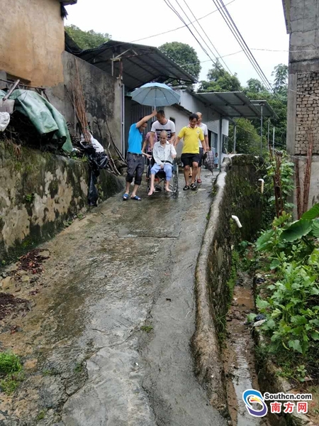 浮山鎮大坑村地質災害點開展老人轉移工作