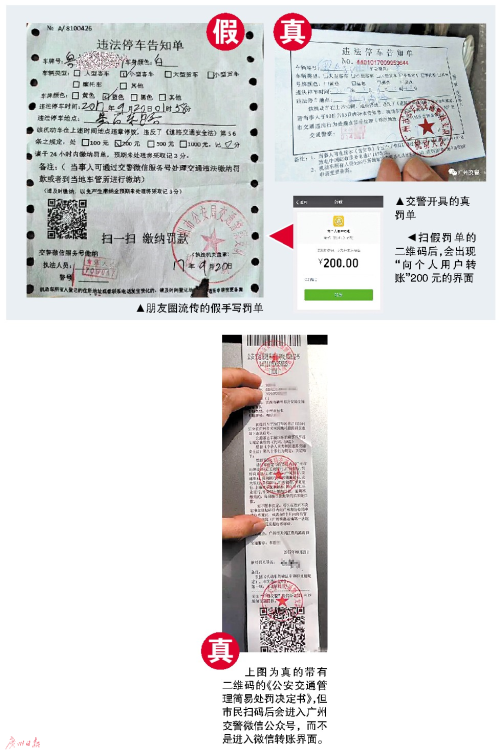 廣大市民掃描上述三種法律文書上的“廣州交警e”二維碼后,進入的是廣州交警的微信公眾號,而不是直接進入微信轉賬界面。因此,凡是掃描二維碼即直接進入微信轉賬界面的可確認為假冒法律文書。