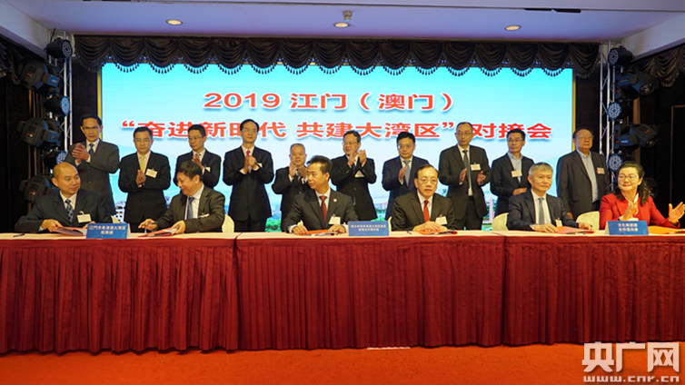 江港(江澳)“奮進新時代 共建大灣區(qū)”對接會。(央廣網發(fā) 江門市政府新聞辦供圖)