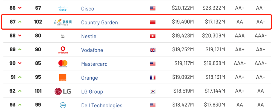 近日,英國知名品牌價值咨詢公司Brand Finance發(fā)布“2021年全球品牌價值500強”榜單,碧桂園集團排名自2017年以來實現(xiàn)“五連跳”,持續(xù)攀升至第87位,首次躋身前100位。