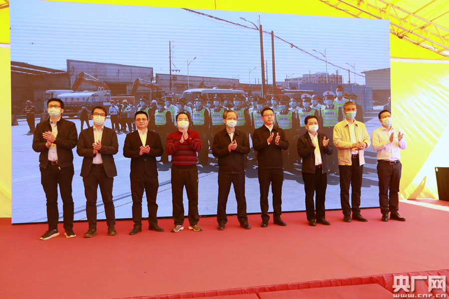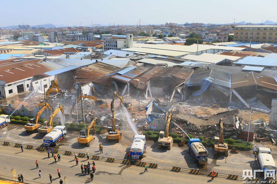2月18日,順德區主要領導參加容桂華口新基圍工業區村改項目拆除儀式(央廣網發 陳炳輝攝)