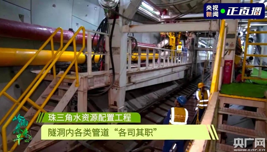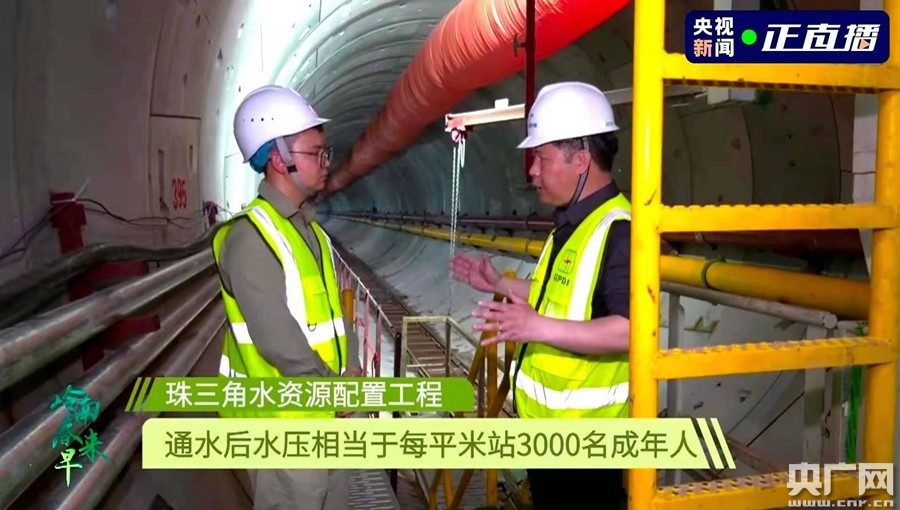 在節目中,總臺記者帶領觀眾去往地下60米,實地探訪了施工難度頂級的珠三角水資源配置。