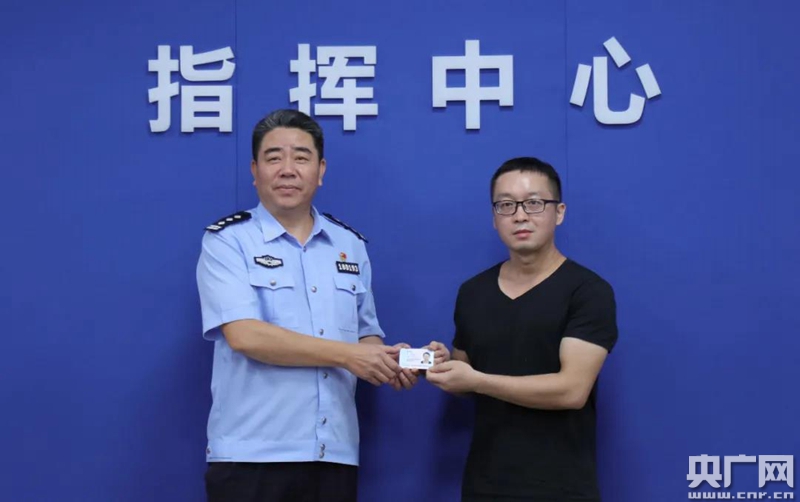 蒙志勇從佛山公安民警的手中接過自己的身份證。(央廣網發 佛山公安供圖)