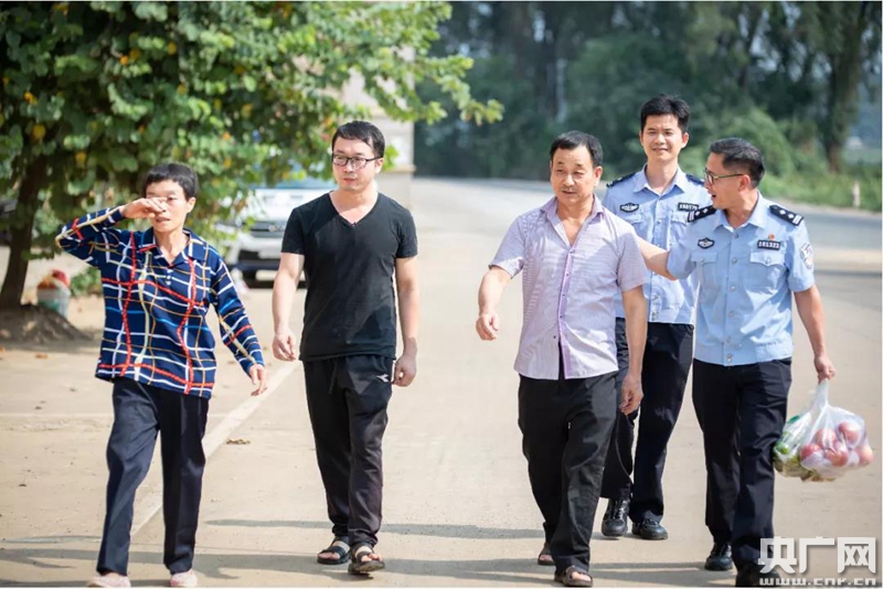 佛山民警陪蒙志勇踏上回家路。(央廣網發 佛山公安供圖)