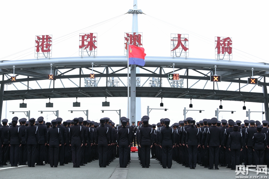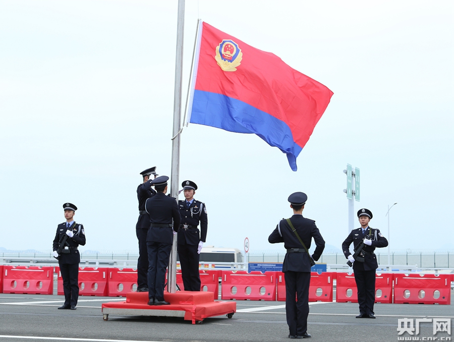 央廣網珠海1月12日消息(記者 郭翔宇 通訊員 張子恒)日前,國家移民管理局珠海邊檢總站首次在港珠澳大橋隆重舉行升警旗和重溫入警誓詞活動,隆重慶祝首個中國人民警察節。