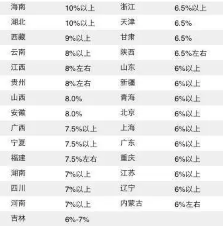 2021年29省區(qū)GDP增速目標(biāo)。(數(shù)據(jù)來源:各地政府工作報(bào)告)