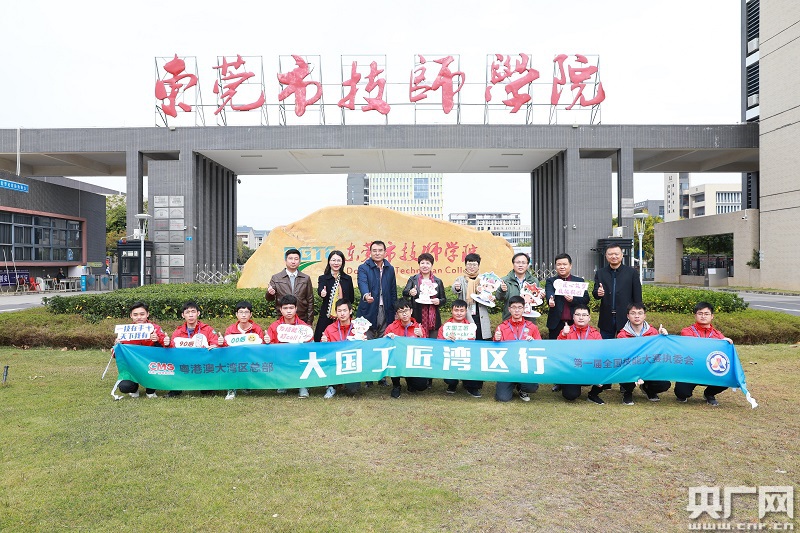 “大國工匠灣區(qū)行”訪問團(tuán)在東莞市技師學(xué)院合影留念。(央廣網(wǎng)發(fā))