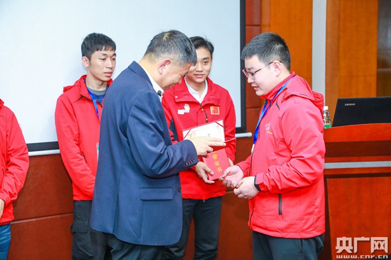 大族激光董事副總經(jīng)理、首席技術(shù)官呂啟濤向到訪選手頒發(fā)“榮譽(yù)顧問”證書。(央廣網(wǎng)發(fā))