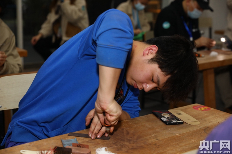 “原來制作一個小小的書簽也會這么累!苯】嫡兆o項目的選手張敏告訴記者,在學院課堂互動環節參與制作紅木書簽,感受到制作的不易。在課室的另一邊,30秒不到就能把大師準備好的魯班鎖拆解完畢,對此,精細木工項目的陳澤錕表示,了解魯班鎖是自己專業的“第一堂課”。