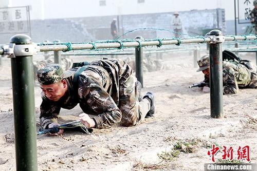 資料圖:新兵正在匍匐前進。中新社記者 張添福 攝