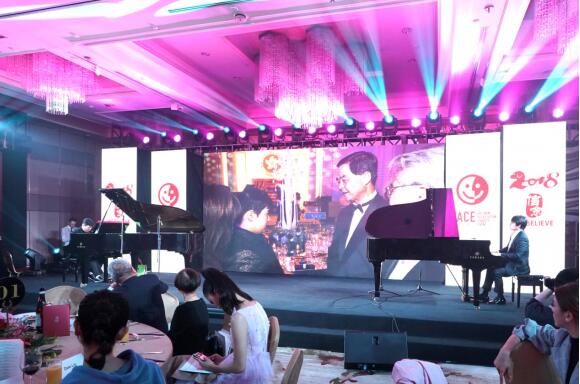 在此次慈善晚宴上,雅馬哈樂器音響(中國)投資有限公司,支持了兩架鋼琴,為這場2018FACE第14周年慈善晚宴助力!我國青年鋼琴演奏家、“雅馬哈藝術(shù)家”宋思衡也來到了現(xiàn)場。宋思衡在獨奏《土耳其進(jìn)行曲》之后與同樣被雅馬哈授予“雅馬哈未來藝術(shù)家”的劉明康為大家表演鋼琴合奏《夢中的婚禮》《羅密歐與朱麗葉》。在這個匯集中外名流、高朋滿座的宴會廳里,劉明康駕馭這臺鋼琴“大殺器”得心應(yīng)手,悠揚的旋律如潮水般噴涌而出,把聽眾帶領(lǐng)到他那多彩的世界。這兩位“雅馬哈藝術(shù)家”用靈巧的雙手把悠揚的旋律印刻在每一位嘉賓的心中。
