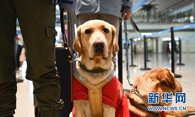 在順利通過安檢之后,我們和其他乘客一樣在候機廳等候。我們全程都身著導盲犬紅色工作服,我們都是訓練有素的導盲犬,沒有訓導員或者主人的指令我們是不會隨意行動和發出聲音的。