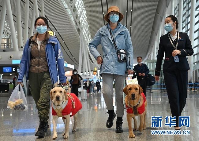 乘機之前,我們的訓導員提前跟航空公司聯系,南航湖南分公司啟動了導盲犬保障程序。