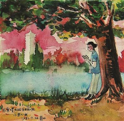 兩本新書也帶來有趣的話題,就是劉心武的水彩畫究竟如何?《潤》一書中收入了劉心武親繪水彩畫,《偷父》里面也有若干他自繪的插圖,讓讀者感受到別樣魅力。繪于1981年的水彩畫《為宗璞大姐生日而作》,見證著劉心武與長他14歲的宗璞保持逾35年的文字之交,但這幅畫的原作在前幾年宗璞從北京大學燕南園外遷時,不慎流落到了社會上,后被在網(wǎng)上拍賣,成交額不菲。對于劉心武和宗璞來說,此畫的流失都是遺憾之事,好在畫成后拍下過照片,《潤》中所印系照片。希望收藏此畫的人士能予愛護。