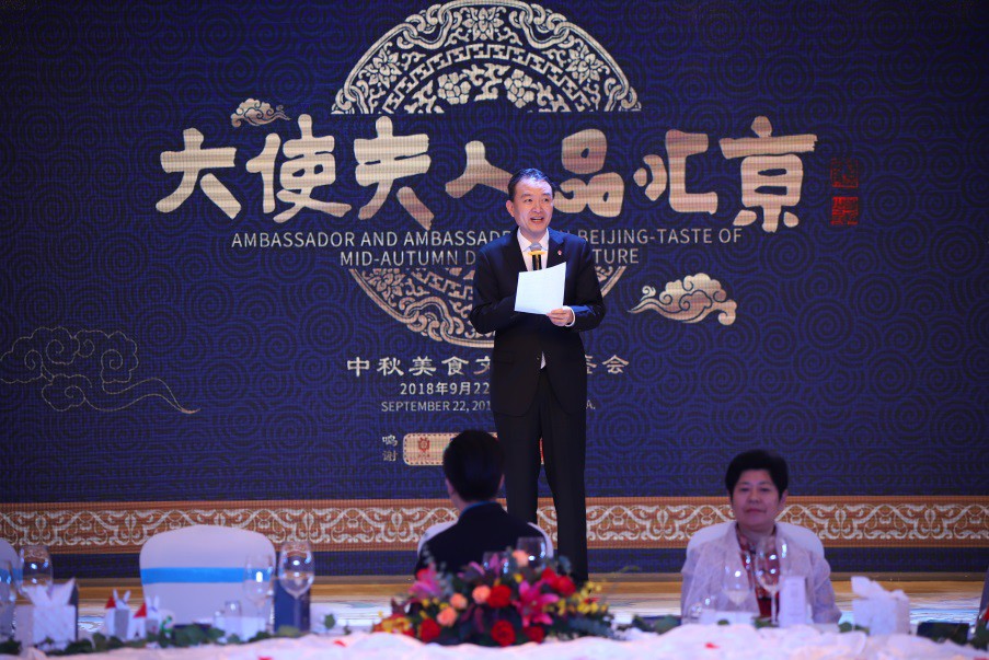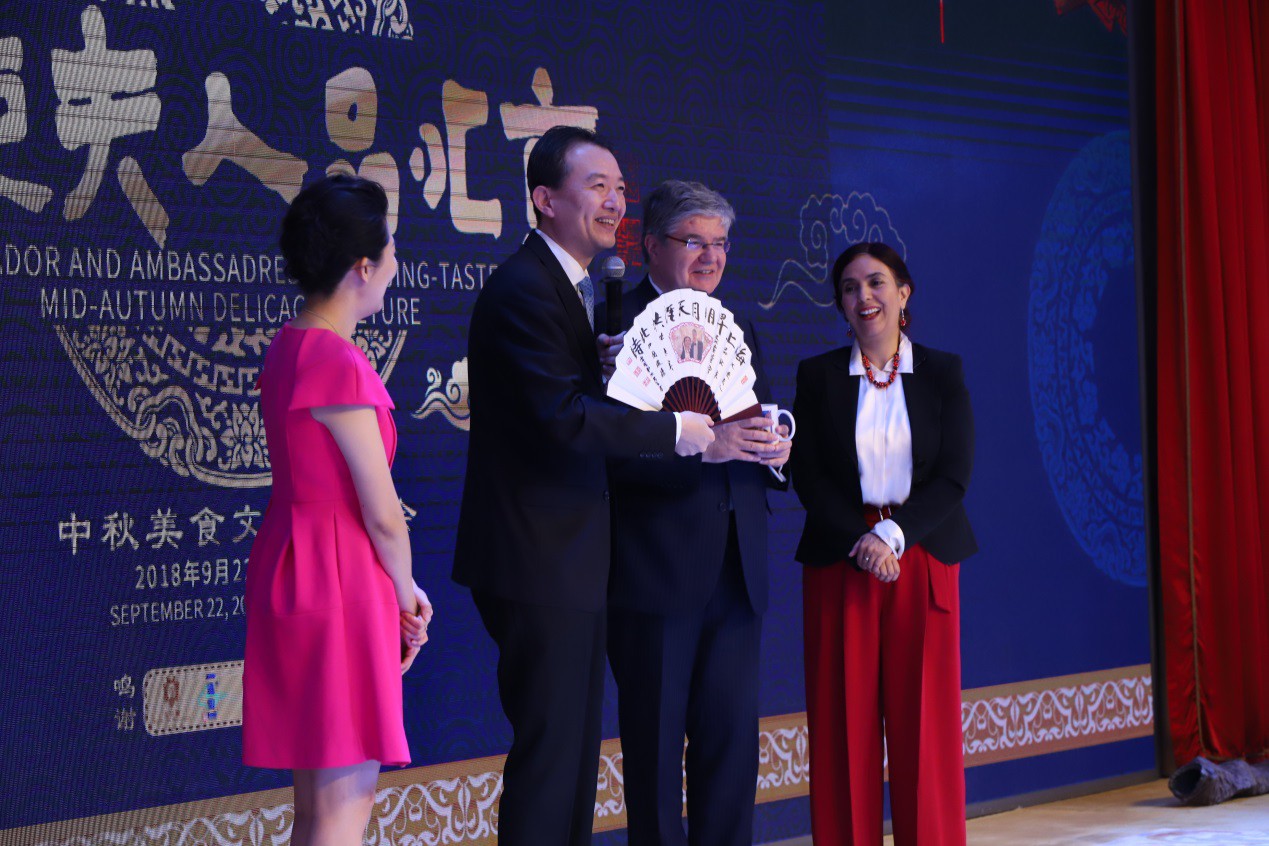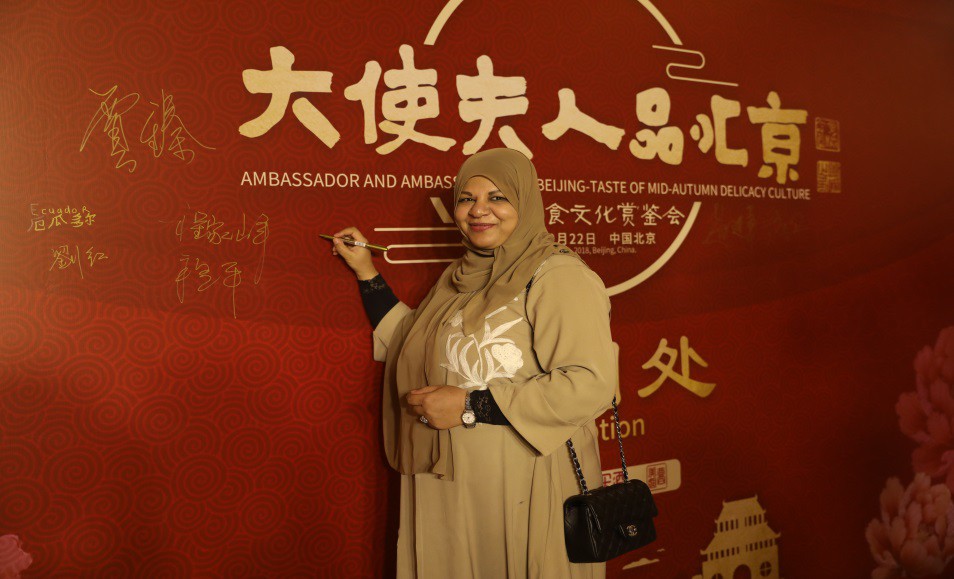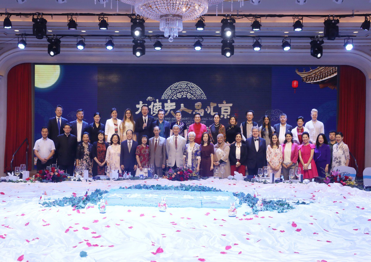 2018年9月22日,中秋節前夕, “大使夫人品北京——中秋美食文化鑒賞會”在北京宴宴會廳舉行。眾多中外使節及夫人齊聚一堂,一起做月餅、品巖茶、寫書畫、聽昆曲、賞緙絲,度過了一個充滿中國韻味的文化之夜。